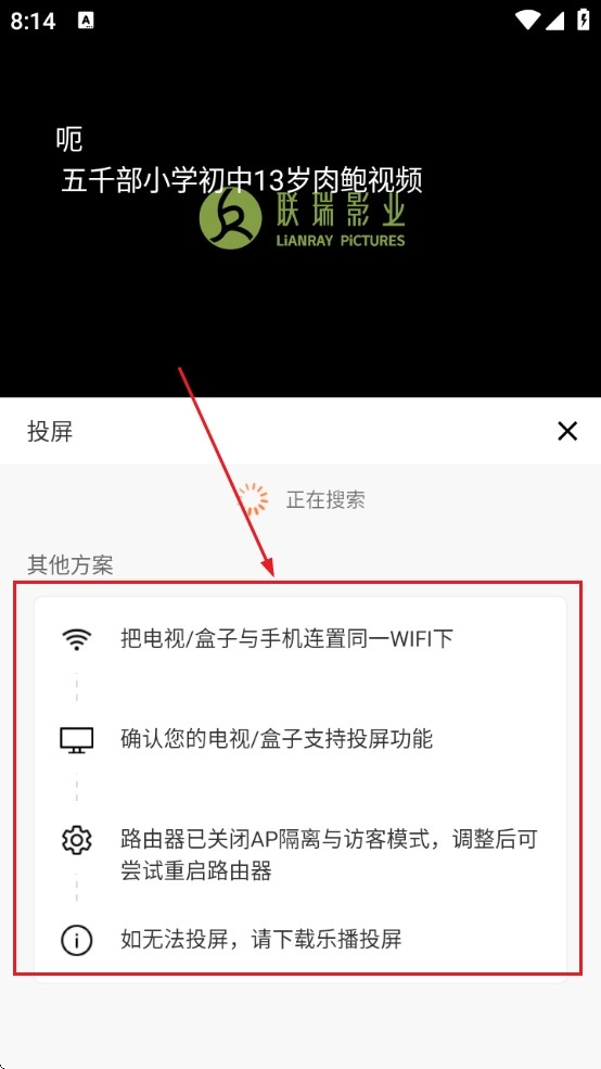 将手机和电视连接同一网络上!