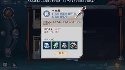 参加一日游需组队进行,可自行创建队伍或选择快速组队,队伍人数至少3人。每日完成两轮一日游即可获取全额收益,若你担任队长,带领队员完成5个任务后,还有机会获得队长礼包,该礼包为额外奖励,每天最多能获得两个。