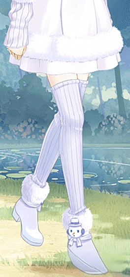 这双袜子不像套装里的其他部件那样是纯粹的白色,更偏向浅紫色调。厚实的质地一眼就能看出来,保暖效果想来会特别出色。条纹的设计让它不会显得单调。脚趾处的特殊设计能避免不适感,确实是一款很棒的袜子。“这款温暖棉袜是冬季衣柜的必备单品,既保暖又百搭,很受年轻女孩的喜爱。”