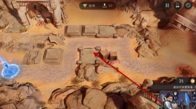 打法:攒够10费后先下6费的毁灭爵士,接着放出魔眼和鬣狗去冲阻挡位。这一关核心是讲解魔兵进攻的基础思路——守护者能挡住的单位数量是有限的,所以我们让大哥在前承受伤害,后面用数量较多的小怪去冲阻挡,这样就能通关了。