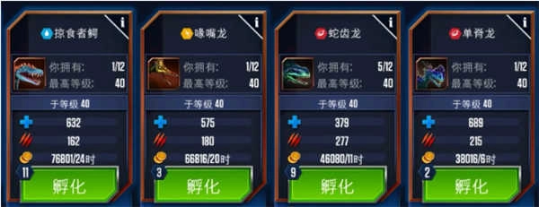 孵化所:每一只恐龙的诞生都离不开孵化环节,游戏会免费给玩家提供一个基础孵化器,玩家要是花费现金就能解锁更多孵化器,这样培育恐龙的速度也会更快。