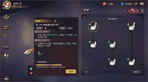 当熟练度达标后,即可自由进阶技能,进阶后的技能会新增衍生效果!