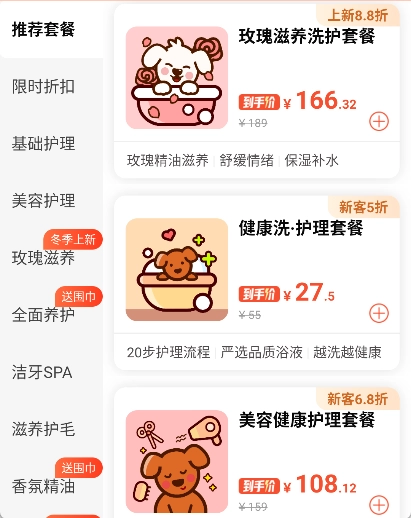 一键预约,即可享受洗澡、美容、洁牙、SPA、寄养等全方位服务。