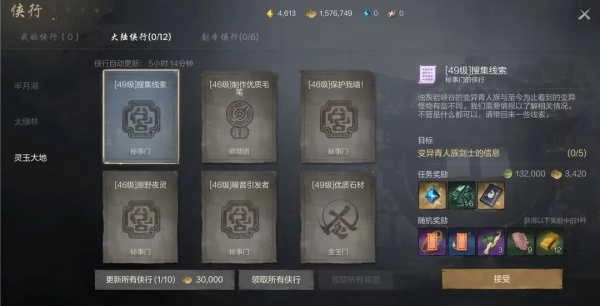 侠行任务的主要奖励包含大量经验值、金币、绑定神石、强化石碎片、星光剑灵召唤券等丰厚物品,随机奖励则有高品质饰品、灵药、秘诀、金条等,这些奖励的丰厚程度均与侠行的品质挂钩。每日完成侠行任务都能获得12次抽奖机会,由于抽卡资源较为稀缺,灵芝相关的事项或许可以暂时搁置,但侠行任务务必抽时间完成。