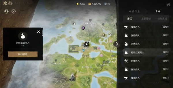若灵芝对所选武器不满意,或是不小心选错了武器,可前往武器商人那里重新购置武器。点击界面左上角打开地图,选中【半月湖】区域,接着点击【目标】,就能找到初级武器商人。