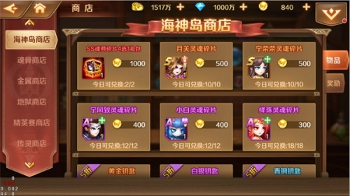 在海神岛历练的过程中,我们能够获取海神币,而这些海神币可以在海神岛商店里兑换珍稀道具,像大量的S级魂师灵魂碎片以及SS魂师灵魂自选礼盒都包含其中!这听起来是不是特别诱人呀~