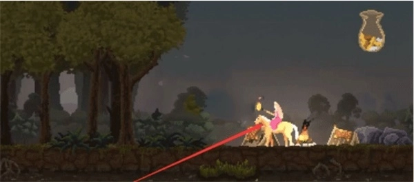 游戏开始时地面上会有9到10个金币(要是有教程的话记得跳过),先把火堆点燃,然后把两个难民都招募过来——具体操作就是往地上扔金币。接下来买两把弓,**特别注意别买锤子**!之后往左边或者右边去探索。碰到小怪不用紧张,往地上扔金币就行,要是没金币了就往回跑。