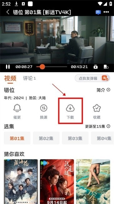 找到喜欢的影片后点击进入播放页面,点击【】