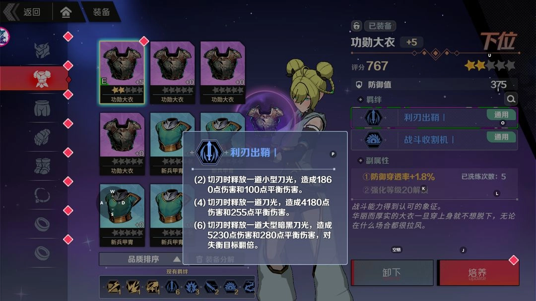※:前期所有初始羁绊为利刃出鞘的装备,哪怕是蓝装,都不建议分解