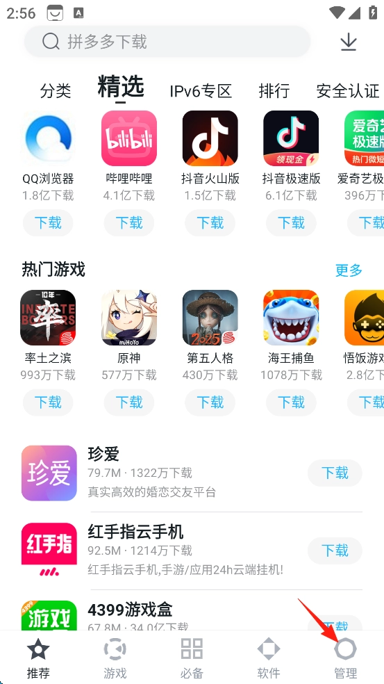 点击屏幕右下方的“管理”。