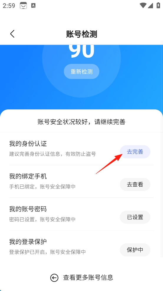 这样就完成了账号安全分的提升,能够更好地保护用户账号的安全。