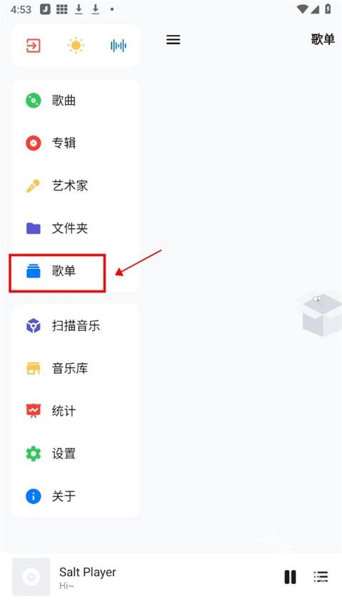 在展开的选项中,点击歌单;