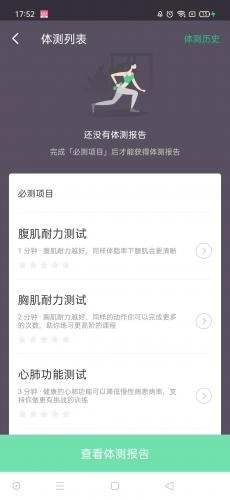 最后只需在【个人中心】里找到【身体测试】,接着点击【体侧列表】下方的【查看体测报告】就可以了。
