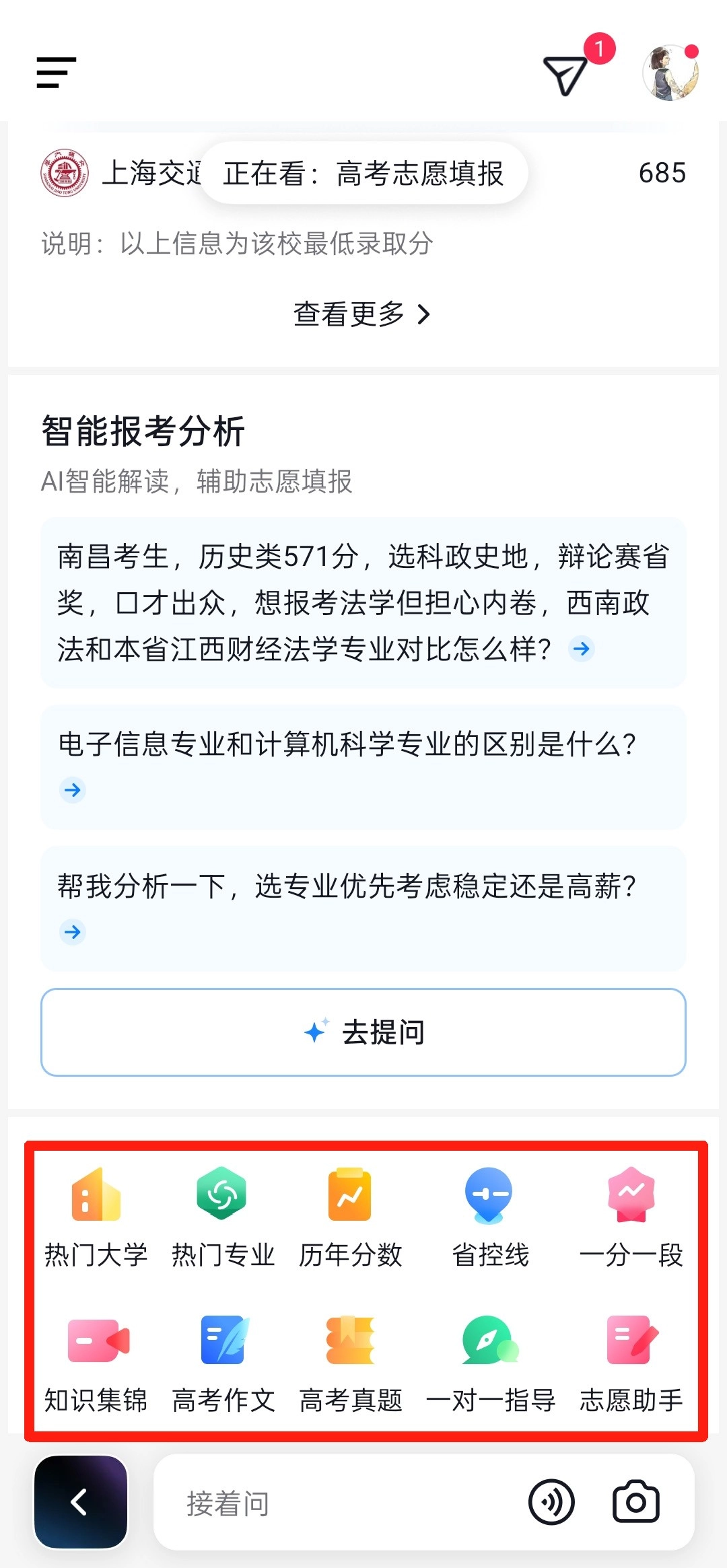 除了志愿填报,用户还能下拉搜索结果页面,这里还有不少和高考志愿填报相关的功能可供使用!