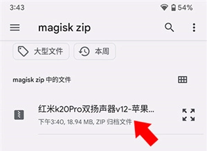 进入个人文件夹界面后,挑选我们需要刷入的模块(一般为压缩包格式)。