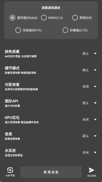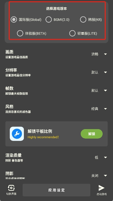 马上打开应用,点击左下角的软件图标来切换界面模式,接着在上方选好游戏的版本。