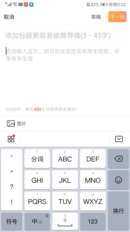 进入编辑界面后,先把文章的标题和内容编辑妥当,接着点击右上角的【下一步】按钮,就能完成文章的发布操作了。