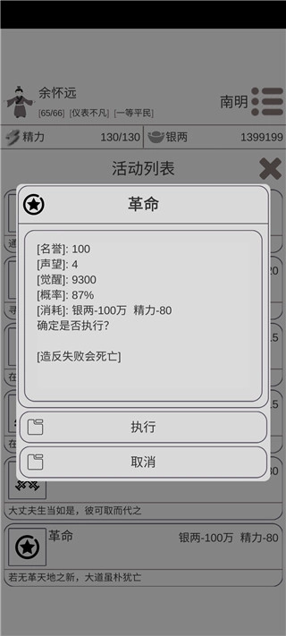 起义成功后无法开展探险活动,目前不确定这是否属于程序漏洞,但正常的游历功能不受影响,可以正常进行。